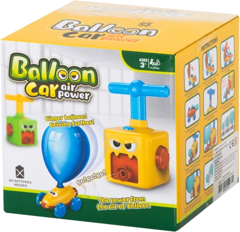 Sæt ballonen på, pump et par gange og tryk på knappen – bilen farer frem ved hjælp af trykluft. Sjov der skåner både pengepung og miljø.