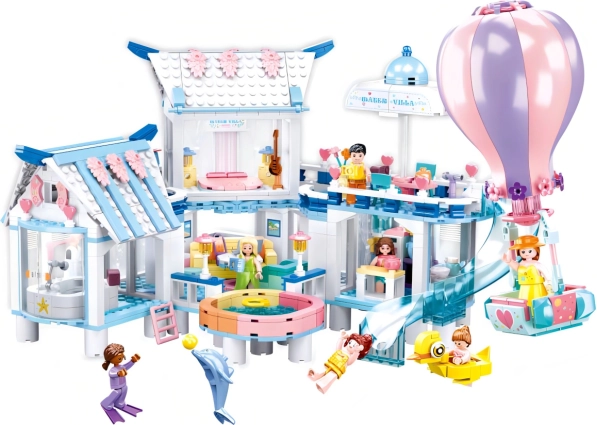 Sluban Happy Diary Flydende villa med pool er et fantastisk byggesæt, der tilbyder uendelige muligheder for kreativ samling og leg fyldt med eventyr. Det bringer en farverig verden af sjov for både små og store modelentusiaster.
