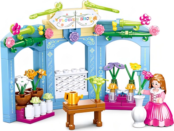 Byggesættet Sluban Dags Blomsterhandel er det ideelle valg for alle, der elsker smarte spil og skabelse. Hovedtrækkene ved dette sæt inkluderer: