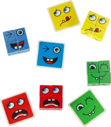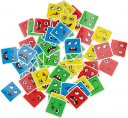 Det rige kortsæt i klare farver opfordrer til hurtig samling af ansigter, styrker iagttagelsesevnen og lærer følelser på en legende måde.