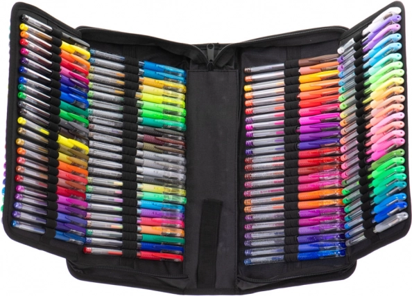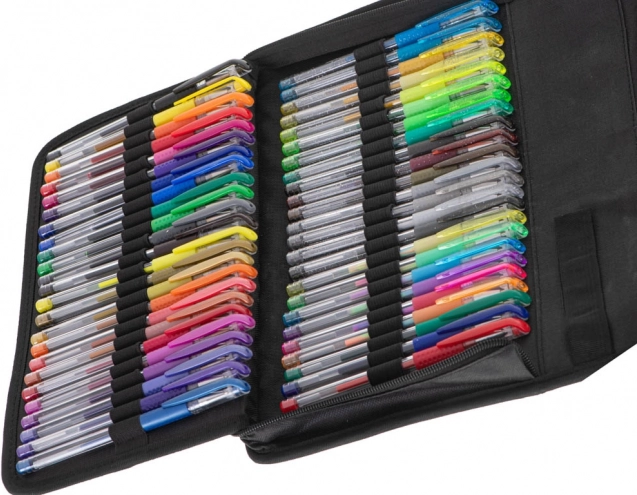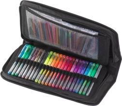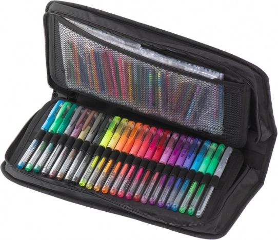 Det store sæt gelpenne giver uendelige muligheder for at skabe. Takket være de levende og farveægte farver bliver dine noter og illustrationer altid tydelige og skarpe. Det organiserede tekstiletui med lynlås holder alt pænt samlet derhjemme, i skolen og på farten.