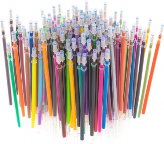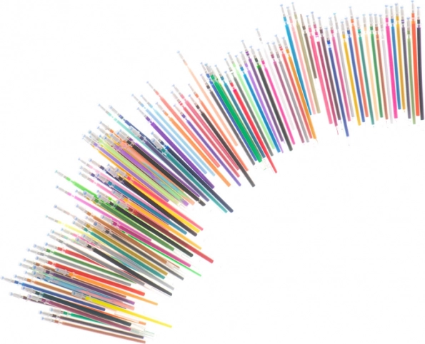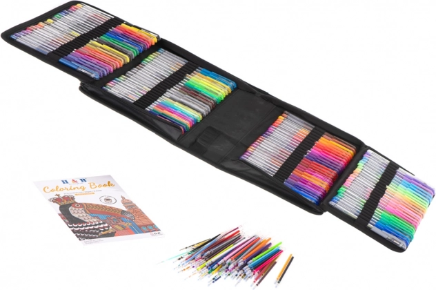 I pakken finder du en blanding af fluorescerende, metalliske, glitrende og ombre gelpenne. Når en yndlingsfarve løber tør, skifter du blot patronen – der er 120 stk. i sættet, så kreativiteten aldrig går i stå. Der medfølger også et farvelægningshæfte med 16 motiver til både børn og voksne, ideelt til træning af finmotorik og antistress-afslapning.
