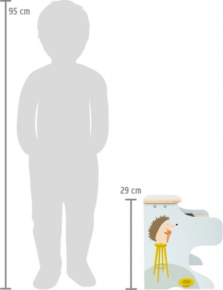 Dette elektriske børneklaver er en imitation af et instrument – det er designet til leg og læring, ikke til professionel lyd. Takket være de kompakte mål passer det nemt på et bord eller en hylde og er klar til at inspirere små musikere til at udforske melodi og rytme.