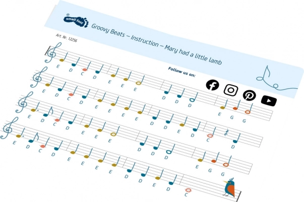 Det elegante og stabile small foot Groovy Beats børneklaver er et fremragende valg til tidlig musisk læring. Kombinationen af naturligt træ, moderne farver og børnevenlige motiver gør det til et markant indslag på børneværelset. Klistermærkerne på tangenterne gør orienteringen og de første stykker lettere, mens noderne giver en underholdende start.