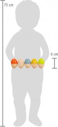 Disse musikæg i træ er ideelle til den første introduktion til rytme og lyd. Takket være forskellig fyldning og konstruktion har hvert æg sin egen særlige raslekarakter, som vækker børns nysgerrighed, koncentration og hørelse. Den ergonomiske form er nem at holde selv for de mindste hænder.