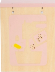 Det rige udstyr understøtter kreativ leg: fra æg med velcro og træsmør til tekstilsmåkager, dejskraber, kagerulle, bageplade og skål. Æske med bageblanding med børnesikker elastiklås og billedopskrift inspirerer til at finde på egne lækkerier.