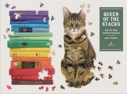 Nyd timers underholdning med dette unikke puslesæt Queen of the Stacks. Sættet indeholder to motiver – det første forestiller en farverig stak bøger, det andet en realistisk tigerstribet kat. Begge designs er udført med stor præcision og giver produktet en kvalitetsfinish.
