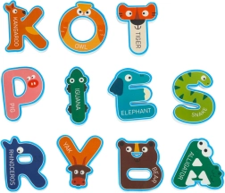 Dette farverige sæt skumbogstaver og -tal gør hvert bad til et eventyr. Hvert bogstav ledsages af et sødt dyr, som hjælper børn med at huske former og navne. Gør dem blot våde – de hæfter på glatte overflader og tørrer hurtigt efter badet.