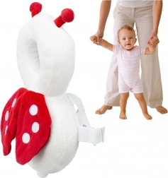 Den runde pude bag hovedet dæmper fald på ryggen og beskytter det følsomme nakkeområde, mens barnet lærer at gå.