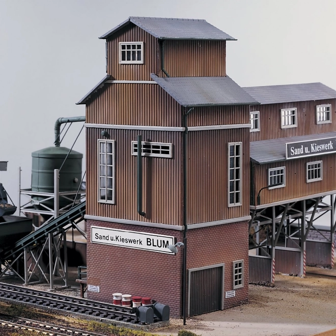 Sorteringstårnet i sandgraven E. Blum fra serien PIKO Authentic Edition er en del af et komplet sæt byggesæt til dette anlæg, men kan også anvendes selvstændigt. Ved foden er det udstyret med en lille rampe og byder på mange detaljer, herunder tagrender, belysning og naturligvis realistiske detaljer af det tekniske udstyr, forskellige udluftninger og armaturer. Bygningens døre er funktionelle og kan åbnes. Bygningen kan udvides individuelt med byggesæt som læssebro, silo med transportør, skinnekran og salgs-/kontorbygning. Sættet indeholder også en base til at færdiggøre den nærmeste omgivelser, særligt forberedt til udvidelse med en silo med transportør. Andre genstande vist på billedet (biler, figurer osv.) er ikke en del af leveringen. PIKOs plastikminiatyrer finder anvendelse i designet af realistiske anlæg og dioramaer. Med deres avancerede farvesætning, der i denne serie også omfatter patinering, efterligner de deres forbilleder med maksimal troskab, som i nogle tilfælde yderligere kan forstærkes individuelt ved hjælp af de medfølgende decals. De detaljerede og præcise plastikstøbte dele passer glidende sammen, og takket være den detaljerede vejledning, der følger med hvert byggesæt, er samlingen let, så du kan bruge din værdifulde tid på det unikke landskabsdesign og placeringen af de enkelte elementer i scenen. Blandt tilbehøret, der tilbydes til disse modeller, finder du et bredt udvalg af ekstraudstyr, forbrugsmaterialer samt guider med instruktioner og værdifulde råd til anlægsdesign. Fremstillet i Tyskland i overensstemmelse med de strengeste kvalitetsstandarder. Hovedegenskaber:skala H0 (1:87)mulighed for udvidelse med yderligere byggesætrealistiske farver med patineringnem samlingfremstillet i Tyskland Dokumentation:samlevejledning til model nr. 61124