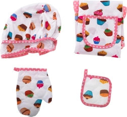 Med dette søde køkkensæt kan børnene opdage madlavningens magi lige derhjemme i jeres eget køkken. Ideel til udvikling af manuelle færdigheder og samarbejde mellem forældre og børn, vil dette sæt ikke skuffe. Indeholder forklæde, handske, kokkehue og bordskåner, alle dekoreret med farverige cupcakes, det lyser op i enhver køkkenaktivitet.
