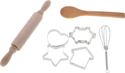 Indeholder kagerulle, ske, udskærere og piskeris. Fremstillet af kvalitetsmaterialer, der er holdbare og sikre for børn.