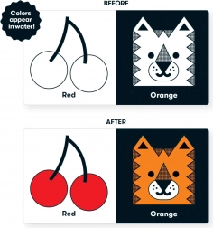 Den magiske badebog fra Mudpuppy forvandler hvert bad til en glædelig opdagelse. Dyp blot bogen i vand, og de sort-hvide illustrationer bliver til klart farvede billeder. Børn lærer på legende vis farverne og registrerer de forandringer, vandet medfører.