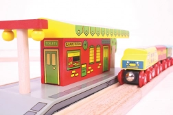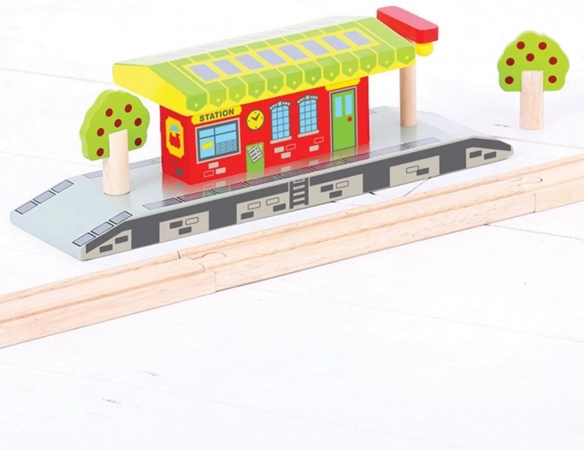 Stationen er fremstillet af kvalitetstræ fra ansvarlige kilder og opfylder aktuelle europæiske sikkerhedsstandarder. Lyse farver og rene linjer skaber en indbydende atmosfære for de små passagerer.