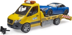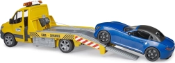 BRUDER bugseringsbilen baseret på MB Sprinter imponerer med detaljeret udførelse og rige funktioner. Børn vil elske blålyset med lys og lyd, den realistiske rampe med udtrækkelige skinner og stopkiler samt åbnbare døre og sidelommer/skabe. Med følger en sports-cabriolet med aftageligt tag og udskiftelige hjul.