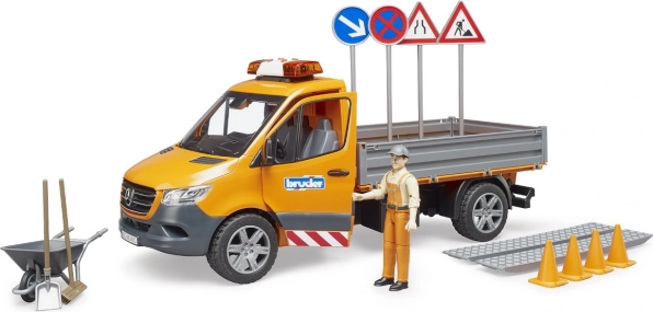 Detaljeret model af Mercedes‑Benz Sprinter fra BRUDER til vejvedligehold bringer lys- og lydeffekter, tipbar lad med nedfældelige sider og masser af tilbehør til realistisk leg. Inkluderer vejarbejder‑figur, ramper, skilte og kegler. Kvalitets ABS‑plast, målestok 1:16, fremstillet i Tyskland.