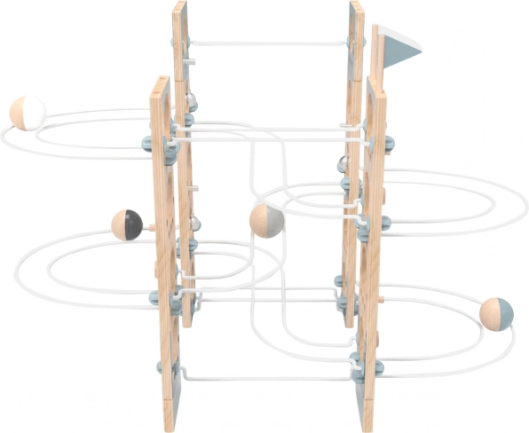 Legetøjets materialer består af holdbart finér og kugler lavet af massivt træ, som med deres skandinaviske og naturlige udseende stilfuldt komplementerer ethvert børneværelse. Denne bane er det ideelle redskab til børns kreativitet og finmotorik.