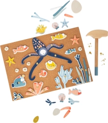 Den medfølgende hammer og søm hjælper børn med at udvikle deres færdigheder og skabe unikke havscener. Et ideelt valg til at støtte kreativitet og fantasi.