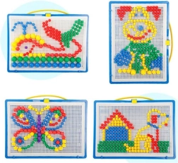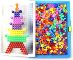 Dette legetøj er elsket af generationer af børn og huskes med nostalgi af voksne. Den enkle konstruktion består af farverige plastsvampe i forskellige størrelser og en perforeret plade til at indsætte dem i. Alt er opbevaret i en praktisk kuffert, så dit barn kan tage sit yndlingslegetøj med hvor som helst.