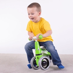 Kørekomforten sikres af bløde greb for et sikkert greb og stille, glatte hjul for jævn bevægelse på både gulv og fortov. Det legende mariehønemotiv motiverer til bevægelse og forlænger tiden brugt på aktiv leg.