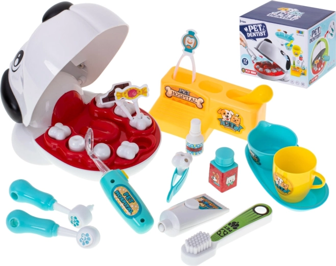 Sættet inkluderer tandbørste, spejl, bakke til udstyr og andre værktøjer til realistisk leg.