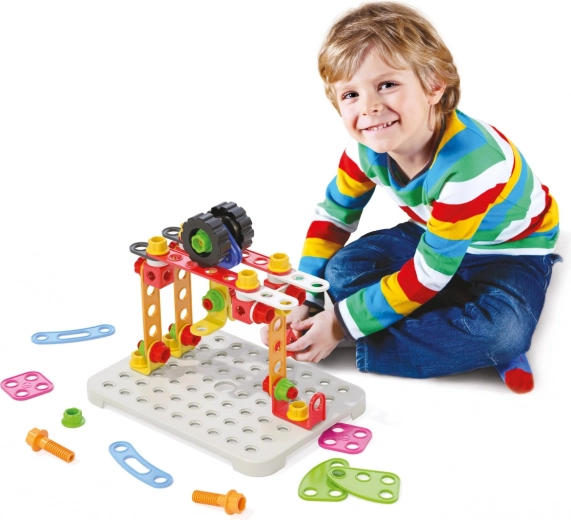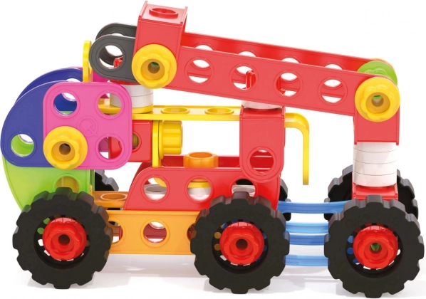 De klare farver motiverer til kreativ leg og støtter finmotorik, logisk tænkning og teknisk forståelse hos børn fra 3 år.
