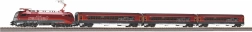 Sættet omfatter et elektrisk Taurus-lokomotiv og tre personvogne i forskellige klasser, så du straks får et attraktivt togsæt. For udbygning kan du tilføje flere kompatible vogne eller spor, og lokomotivet kan udstyres med digital decoder (NEM 652-interface) for fuld DCC-drift.