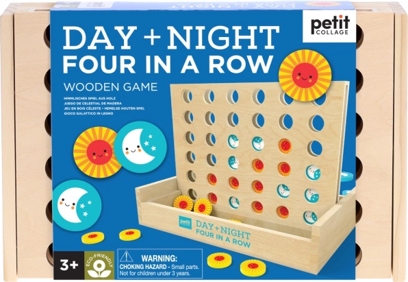 Træspillet Fire på Stribe Dag og Nat kræver ikke kun hurtig tænkning fra spillerne, men også evnen til strategisk planlægning. Målet er at placere fire brikker på stribe på gitteret. Brikkerne har et attraktivt sol- og måne design, som vil fange og glæde både små og store spillere.