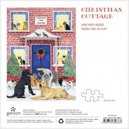 Oplev julens magi med en scene fuld af hunde, katte og julepynt foran en hyggelig hytte. Puslespillet med 1000 brikker giver glæden ved omhyggelig fordybelse og bliver efter færdiggørelse et smukt billede, der glæder både øjet og hjertet.