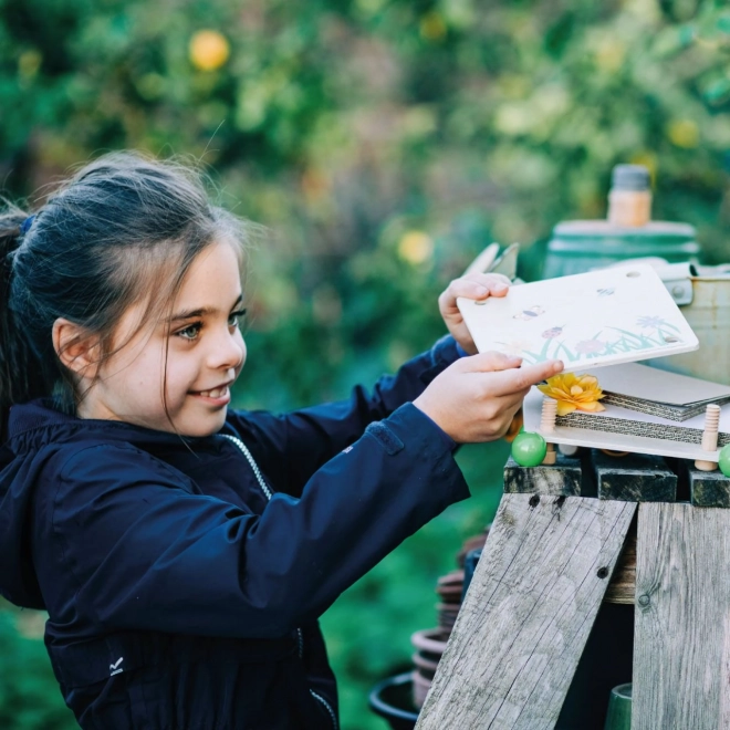 Denne træblomsterpresse er et fremragende redskab til både begyndere og øvede små naturforskere og kunstnere. Børn kan presse yndlingsblomster eller farverige blade og skabe deres egne herbariums, kort eller dekorationer. Toppladen prydes af en glad haveillustration, og de grønne møtrikker gør betjeningen lettere.