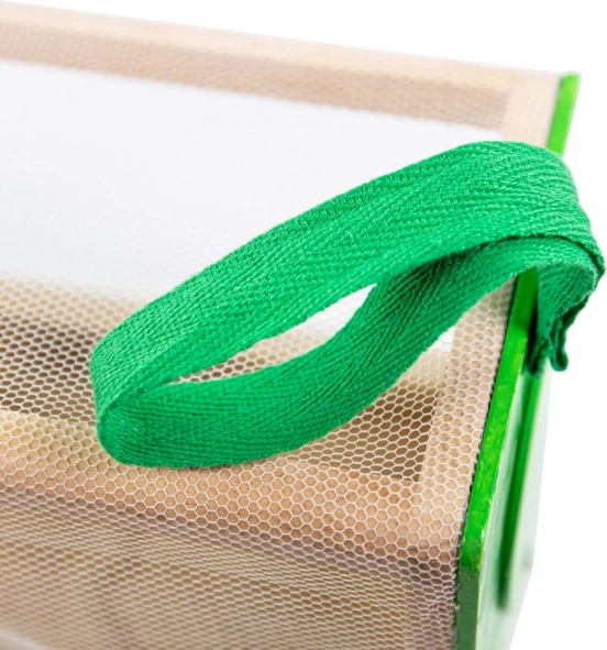 Boksen er udstyret med et stofligt håndtag, hvilket gør det let at håndtere og bære. Ved produktionen er der anvendt kvalitetsmaterialer, der er ansvarligt indhentet, hvilket sikrer produktets lange levetid.
