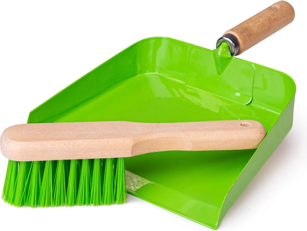 Sættet med fejeblad og kost er lavet af kvalitetsmaterialer som træ og plast, som er ansvarligt indvundet og forarbejdet for sikker brug.