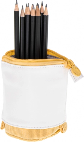 Dette teleskopiske penalhus 2-i-1 er et fremragende valg til skoleelever, studerende og professionelle. Med en enkel bevægelse af overdelen forvandler du det til en stiftholder, der sparer plads og gør skrivebordet mere overskueligt. Det minimalistiske design i kombinationen af øko-læder og fløjl virker moderne og er samtidig behageligt at røre ved.