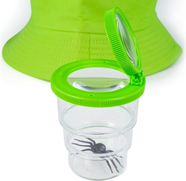 Luppen og den gennemsigtige beholder med låg lader børn udforske selv de mindste detaljer på helt tæt hold – skånsomt for naturen.