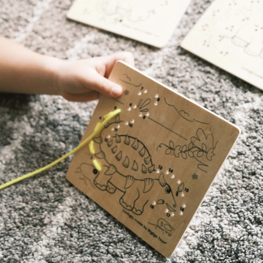 Støt på en sjov måde udviklingen af grundlæggende regnefærdigheder og finmotorik hos børn. Ved at følge tallene og gradvist snøre snørebåndene kan de afsløre konturerne af forskellige billeder. Sættet indeholder en holder, hvor du kan placere pladen med det færdige værk og pynte bordet eller hylden. Vælg mellem flere forskellige motiver. Fremstillet af materialer af høj kvalitet, ansvarligt indkøbt. Hovedfunktioner: 3 plader med forskellige billeder, 3 farvede snørebånd og en holder, robust og holdbar udførelse