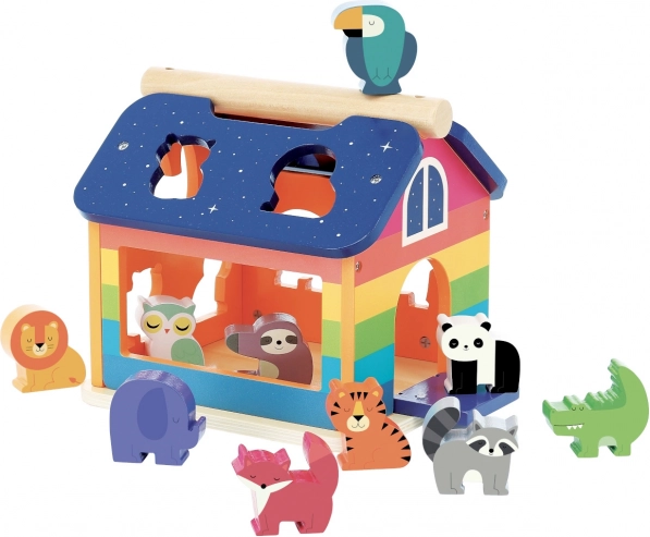 Vilac indsætningshus regnbue er det ideelle legetøj til små børn. Ved hjælp af de mange farverige figurer kan børn gennem korrekt benævnelse og matchning af enkelte egenskaber udvikle deres kognitive færdigheder og fantasi. Huset har åbnebare døre, som er elastisk ophængt, så der ikke er risiko for at klemme små fingre. Huset har desuden et praktisk håndtag på taget, som gør det let at håndtere og bære.