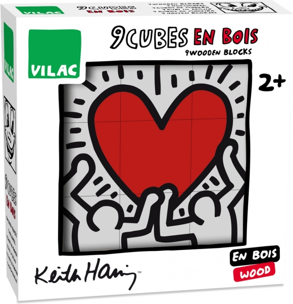 Klassisk sæt træklodser fra Vilac, dekoreret med ikoniske illustrationer af den amerikanske kunstner Keith Haring, kombinerer kunst med leg. Byg og skab billeder, der vækker ethvert rum til live med deres iøjnefaldende farver og linjer.