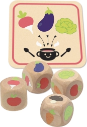 I dette charmerende terningespil for børn forsøger I med jeres kast at skabe kombinationer, der matcher opskriftskortene. Hver tur har du op til tre kast – efter det første kan du beholde udvalgte terninger og prøve at forbedre din hånd. Den, der først samler 10 opskrifter, vinder.