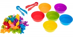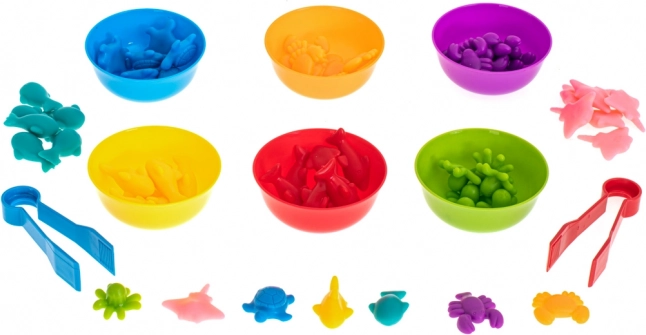 Dette læringssæt med havdyr gør de første skridt i matematik sjove. Børn kan sortere figurer i skåle efter farve, tælle dem, sammenligne mængder og lave simple regneopgaver. Pincetterne træner desuden greb og øje-hånd-koordination.