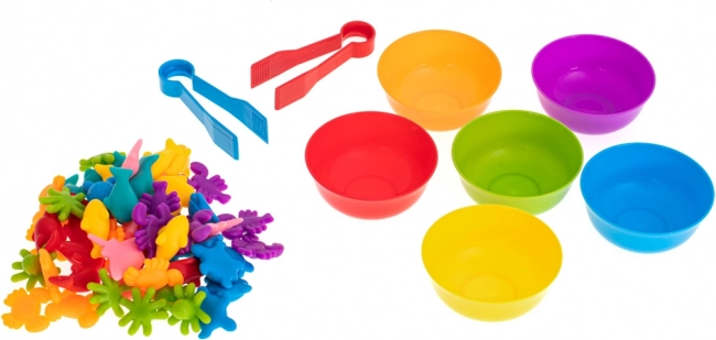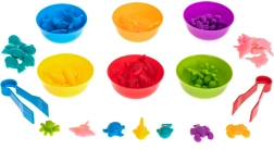 Seks farvede skåle og 36 figurer gør det muligt for børn at sortere, sammenligne og tælle – et solidt fundament for matematiske færdigheder.