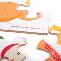 Gennem samling af puslespillet lærer børn at genkende frugter og udvikler deres logiske tænkning og finmotorik.