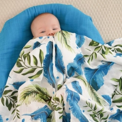 Det smukke mønster med blå fjer og grønne blade tilføjer stil til ethvert sted, hvor du bruger tæppet.