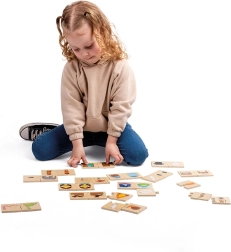 Børn sætter billeder sammen, der hører sammen som modsatte betydninger – for eksempel dag og nat, varm og kold, trist og glad. De glatte, robuste brikker er lette at holde om og lægge, så små hænder kan fokusere på at opdage nye ord og sammenhænge.