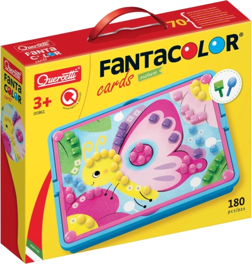 Knappemosaik med opbevaringskurv og 4 fortrykte billedkort til at sætte knapper i. Mosaikken udvikler finmotorik, hånd-øje-koordination og kreativ tænkning. Består af 4 fortrykte, perforerede kort, 180 farvede knapper, indsætningsplade, griberamme og opbevaringskurv. Anbefales til børn fra 3 år. Pakken indeholder: 1 opbevaringskurv, 1 indsætningsplade med huller til knapper, 1 griberamme, 4 perforerede billedkort, 180 farvede indsætningsknapper i 2 former og 6 farver. Hovedegenskaber: understøtter finmotorik, hånd-øje-koordination, kreativ tænkning.