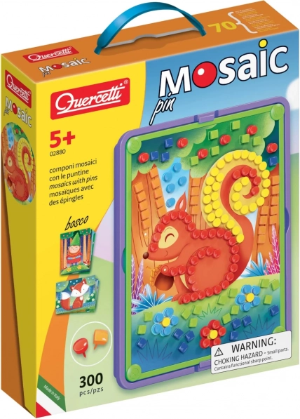 Oplev kreativ leg med mosaikken Quercetti Pin Bosco, som hjælper børn med at udvikle finmotorik, hånd-øje-koordination og kreativ tænkning. Sættet indeholder 8 fortrykte kort med skovmotiver, 300 farvede pinde i 2 former og 6 farver, en solid stikkeplade, en bærramme og en praktisk opbevaringskurv til nem oprydning.