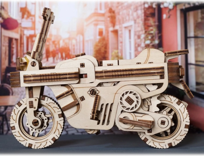 UGEARS’ foldbare scooter er et smart træmekanisk byggesæt, der forener sjov, teknik og design. Takket være den gennemtænkte kompakte konstruktion kan du nemt klappe de følsomme dele sammen og tage modellen med dig – for eksempel i rygsækkens lomme. Optræksdrevet med metalfjeder klarer op til 2 meter på én opt rækning.