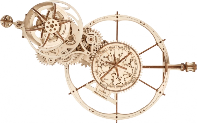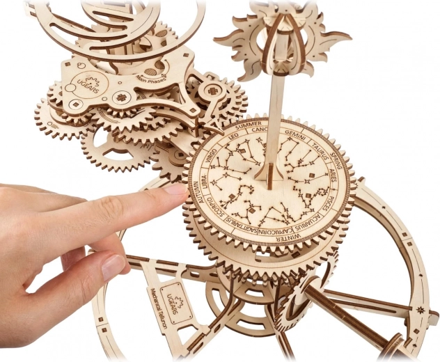 Takket være kalenderindstilling kan du synkronisere modellen med den aktuelle dato og pædagogisk demonstrere astronomiske fænomener for familie og venner – hver dag med et enkelt drej på håndtaget. De præcist udskårne dele i kvalitetskrydsfiner passer nøjagtigt sammen og skaber en imponerende funktionel helhed, som samtidig er en stilfuld dekoration til bordet eller arbejdsværelset.