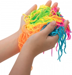 NEE DOH NOODLIES er bløde, elastiske og utroligt sjove nudler, som kan strækkes, drejes og flettes i det uendelige. De fungerer fremragende som antistress fidget-legetøj – de lindrer spændinger, forbedrer koncentrationen og giver en behagelig taktil oplevelse uden rod.