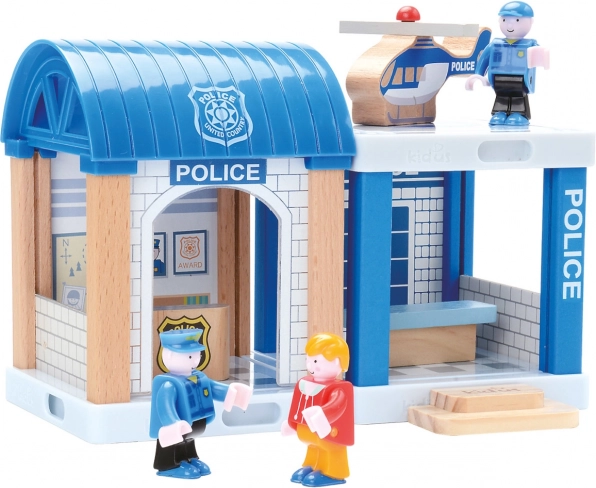 En gennemført politistation med bil og helikopter, som understøtter interaktiv leg og fantasi.