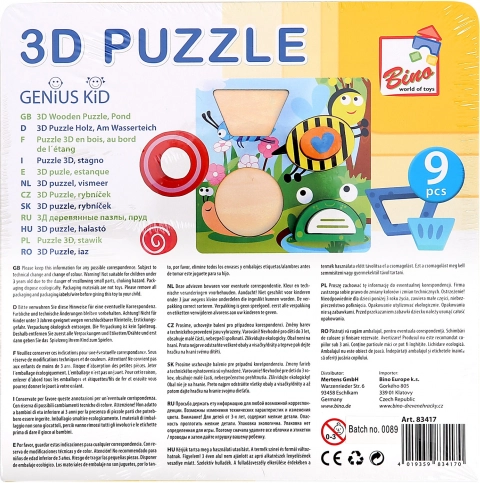 Opdag det sjove 3D-puslespil i træ med motiv af en lille dam fra mærket Bino, som udvikler børns fantasi og færdigheder. Takket være den robuste base og 8 farverige brikker træner børn genkendelse af former, finmotorik, logisk tænkning og koncentration. Den sikre udførelse i massivt træ og kraftig krydsfiner med ufarlige farver og lakker sikrer lang holdbarhed og behagelig brug.